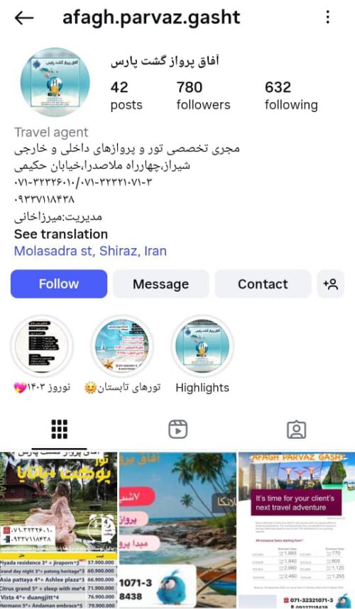 آژانس هواپیمایی آفاق پرواز گشت پارس شیراز یکی از دفاتر شناختهشده در شیرازه که در زمینهی ارائه خدمات مسافرتی و گردشگری فعالیت میکنه. این آژانس در لیست دفاتر عضو انجمن صنفی دفاتر خدمات مسافرت هوایی و جهانگردی نیز قرار داره و بهعنوان مجاز به فروش بلیت و تور شناخته میشود.
