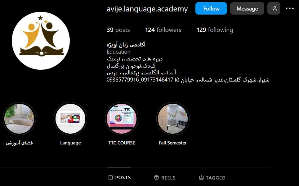 آکادمی زبان آویژه شیراز که در سال 1401 تاسیس شده، یکی از آکادمی های موفق و پیشرو در زمینه آموزش مقدماتی و تخصصی می باشد، و رضایت های زیادی از سوی زبان آموزان ثبت نامی خود دریافت کرده است. این آموزشگاه برای تمامی سنین (کودکان، نوجوانان، بزرگسالان) ترم های آموزشی برگذار نموده و برای تمامی سطوح مبتدی تا پیشرفته دوره های تخصصی ارائه می دهد.