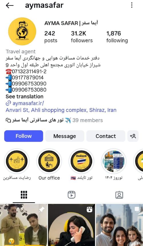 آژانس مسافرتی آیما سفر شیراز با رویکردی نوآورانه و دوستانه فعالیت میکند و خود را بهعنوان گزینهای جوان و پویا در میان دفاتر گردشگری مطرح کرده است. این مجموعه با بهرهمندی از مجوز رسمی گردشگری، تمرکز ویژهای بر طراحی تورهای متناسب با نیازهای مشتریان دارد و همواره سعی میکند خدمات آسان، سریع و تخصصی ارائه دهد.