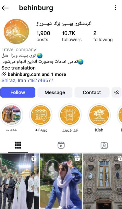 آژانس مسافرتی بهین برگ شهرراز شیراز، مجوز بند ب دارد و زیر نظر مدیریت آقای محمدمهدی سیاوشی فعالیت میکند. این مجموعه در زمینه ارائه خدمات مسافرتی پیشرفته فعالیت دارد و خدمات خود را بهشکل جامع، بلیط، تور، ویزا و رزرو هتل، پیش میبرد. همچنین در صفحات اینستاگرامی این آژانس، خدماتی مانند تور، بلیت، ویزا و هتل همراه با ذکر این نکته دیده میشود که «تمامی خدمات بهصورت آنلاین انجام میشود».
