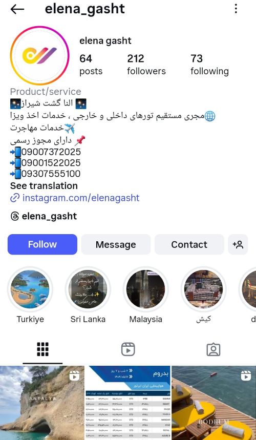 آژانس النا گشت شیراز تورهایی با برنامه‌ریزی منظم برای سفرهای داخلی و خارجی اجرا می‌کند، از جمله مقاصدی چون ترکیه، اروپا، آسیای شرقی و کشورهای دیگر.