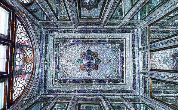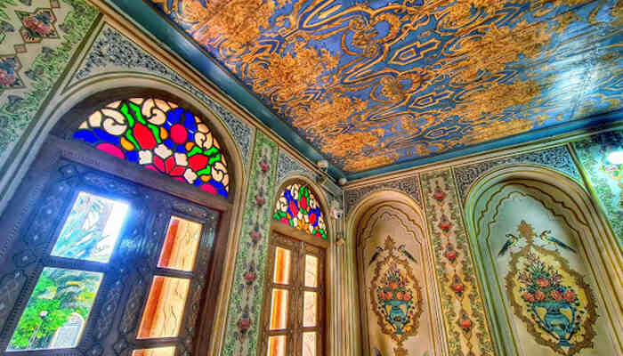 در انتهای باغ، عمارت اصلی نارنجستان قوام شیراز با ایوانی باشکوه و ستونهای سنگی ظریف قد برافراشته است. دیوارها و سقفها آراسته به کاشیهای هفترنگ، آینهکاریهای چشمنواز، گچبریهای هنرمندانه و نقاشیهای زیبا هستند؛ گویی هر گوشهی آن ورقی از دفتر هنر ایرانی است. شیشههای رنگی پنجرهها، نور خورشید را به هزاران تکه رنگ تقسیم میکنند و فضای تالارها را به دریایی از رنگ و نقش بدل میسازند.