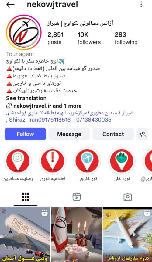 نکو اوج فارس شیراز یکی از آژانسهای رسمی و فعال گردشگری در شیراز است که با تمرکز بر ارائه خدمات جامع سفر، توانسته جایگاه خوبی در میان مسافران بهدست آورد. این مجموعه با داشتن مجوزهای قانونی و بهرهمندی از تیم متخصص، خدمات متنوعی را در حوزه سفرهای داخلی و خارجی ارائه میدهد.