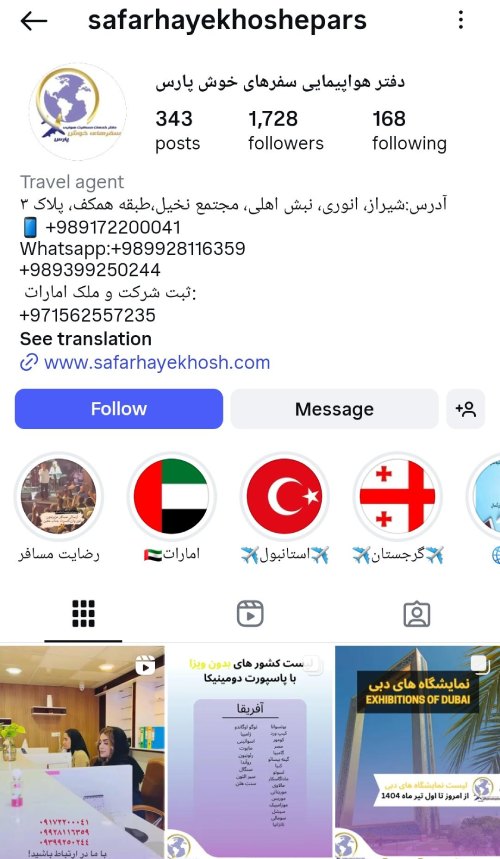 آژانس مسافرتی سفرهای خوش پارس شیراز یکی از برجستهترین آژانسهای گردشگری در استان فارس است که با مجوز حقیقی بند ب از وزارت میراث فرهنگی، گردشگری و صنایع دستی فعالیت میکند، که این موضوع نشاندهنده اعتبار و توانمندی مجموعه در ارائه خدمات تخصصی است.