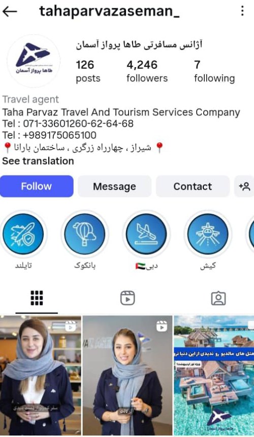 آژانس هواپیمایی طاها پرواز آسمان شیراز