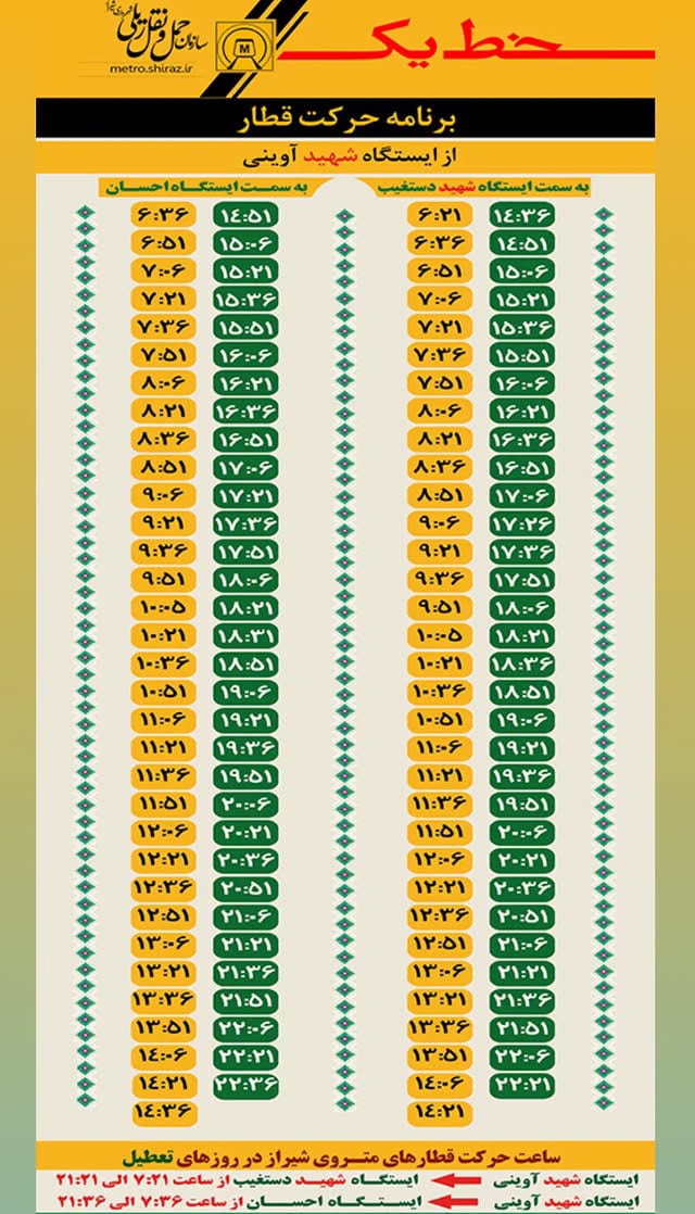 ساعات کاری: همهروزه از ساعت ۶ صبح تا ۱۰ شب